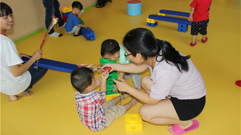 正式进入今天的主题――母亲节。小朋友一起跨过障碍,到目的地领取康乃馨送给最爱的妈妈。