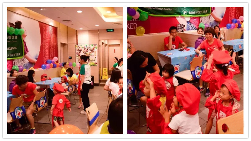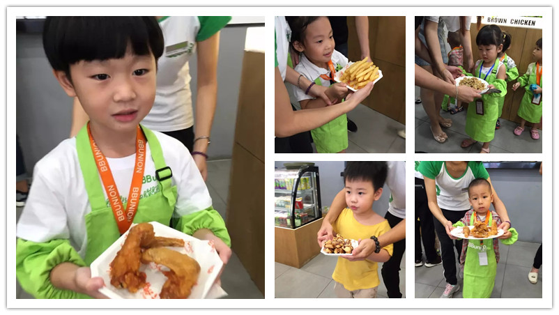 BBunion国际早教顺德中心首次职业体验――“布莱恩小小服务员”于8月20日完满结束,小小服务员依次体验了:迎宾、为客人点餐、收银、送餐等环节,每一环节都表现得相当出色,活动结束时,每位小朋友都得到布莱恩精心准备炸鸡套餐一套作为工作的报酬,满载而归。